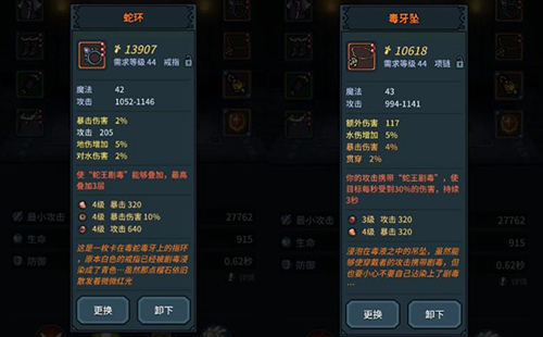2、其次就是留意一下下面两件装备:毒牙坠、蛇环,对于挑战BOSS来说非常好用。