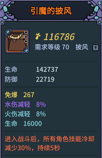 装备效果:进入战斗前5秒内缩短30%技能CD,必备精品,勇者5图小怪及上锁宝箱出。