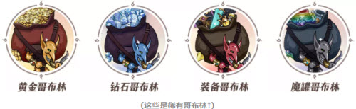 黄金哥布林:额外掉落金币(个人暂时统计到的掉落数量是10万、20万、30万、50万这四种)