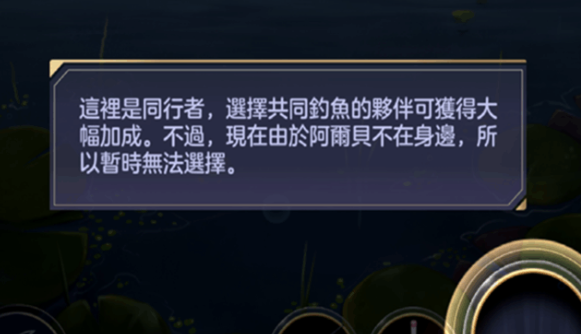 玩家可以选择一个男主角陪伴钓鱼,有男主的陪伴后钓鱼属性有大幅度加成。但只有加入队伍的男主角才能陪伴钓鱼。每次钓鱼成功也会增加陪伴角色的好感度。
