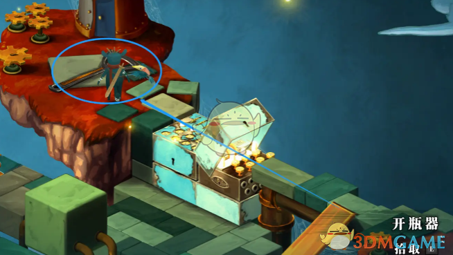 捡瓶盖, 转把手使上面管道联通(每个转两下)