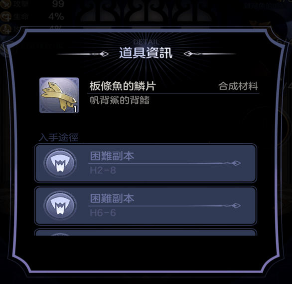 守护者的合成材料很简单只需要4种。精工麻布在困难第一个副本就可以获得,或者可以刷3-1、5-1、7-1副本获得。鸡冠鱼的头冠需要6个玩家可以刷1-5、4-1、6-5副本获得,皮革4块在2-2副本、5-3副本、7-7副本均可获得、板条鱼的鳞片4个可以在2-8、6-6、7-9副本中获得。