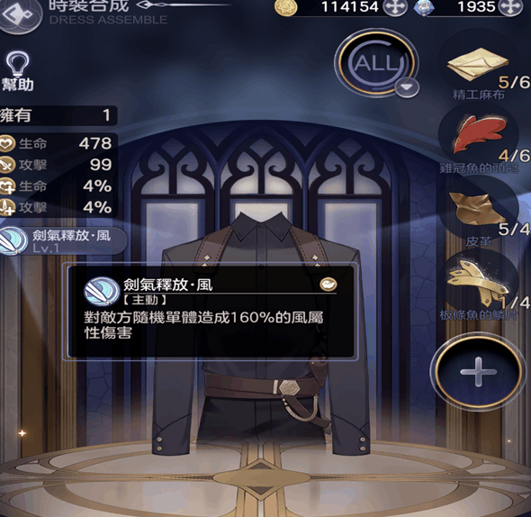 主动技能为剑气释放风,对敌人随机造成单体伤害160%的风属性伤害。守护者基础属性较低但主动技能攻击力还可以,初级玩家可以尝试穿搭。