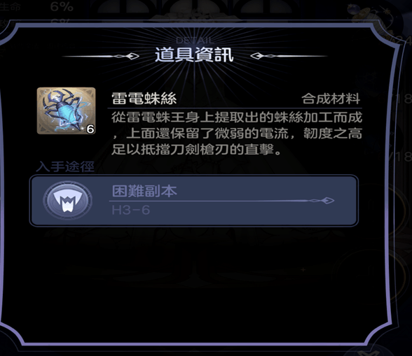 神赐锦缎可在1-8、5-4、7-5副本掉落、附魔银丝线可在2-3、5-7、7-10副本掉落、最难获得的万色魔法能量结晶和雷电蛛丝只在3-4副本和3-6副本掉落。每天可以扫荡3次困难副本,也就是说想要集齐能量结晶和蛛丝最少也需要6天。