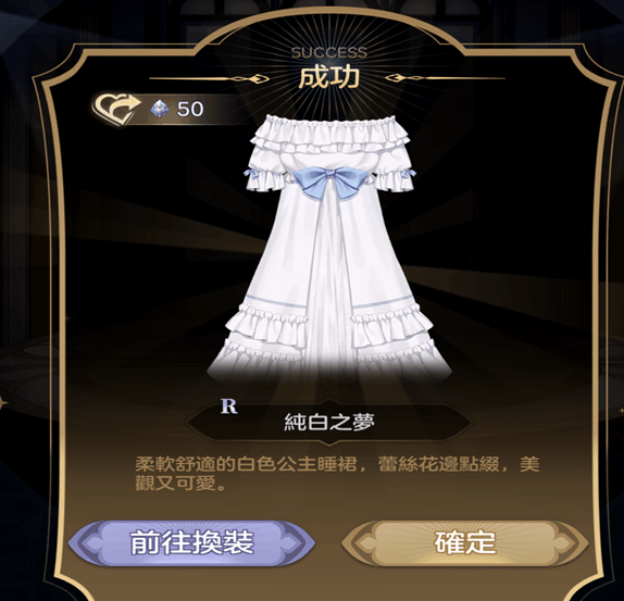 纯白之梦是r级衣服是100%成功,合成除了耗费材料外还会额外消耗800拉卡,虽然一定会成功但是合成衣物完美意外的情况较低。