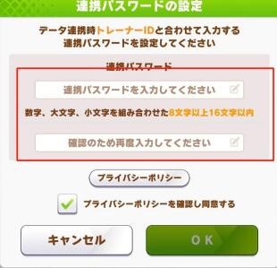 7、输完以后会弹出新窗口显示你当前账号的ID和密码,记得截图保存。用的时候在游戏欢迎界面的右下角菜单里找到【资料连携】后,选择第一个【输入引继码】的连携方法,然后输入之前截图的内容,就能转移存档了