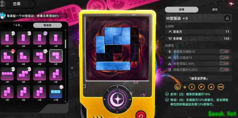 装备方面,空幕的卡带要组合成完整图案激活套装特效,驱动块按角色属性搭配,不用盲目追求高等级,先把核心角色的装备凑齐套装更实用。