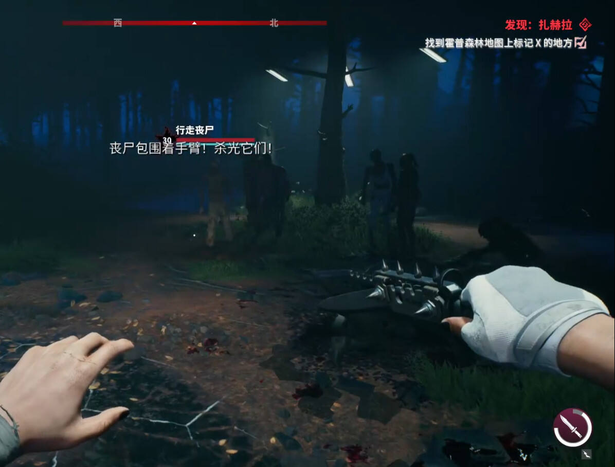 我们来到手臂的最后一处地点,森林一处标有X的地点,此处会有大量的丧尸围住一棵树,将丧尸清理完之后拾取扎赫拉的手臂带回康斯坦丁处完成升天仪式即可