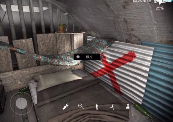 位置:来到床边上,在标有红叉的瓦楞板的旁边可以找到这个线索,如图中所示位置。