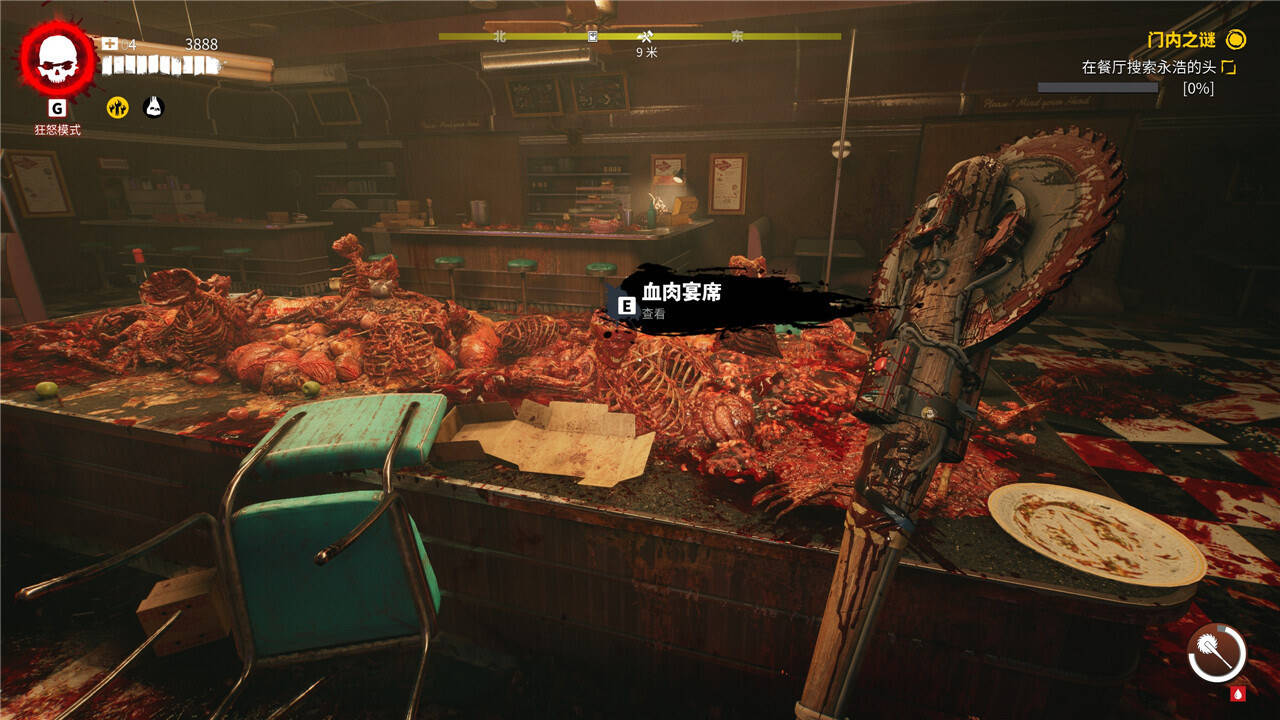 进入餐厅,可以在餐桌上找到永浩的头(餐厅柜台可以找到一个日志,收集后就可以与餐桌互动,直接找到永浩的头了)