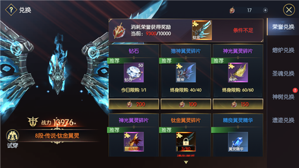 灵羽的获得方式非常多样,常规玩法中的守护米娅、竞技场挑战都能够获得,此外战盟神翼、荣誉商店兑换以及各种商店之中都能够买到。翼核则稍微少一些,玩家只能够在荣誉商店之中兑换,此外在钻石商店以及一些礼包之中会有限购。