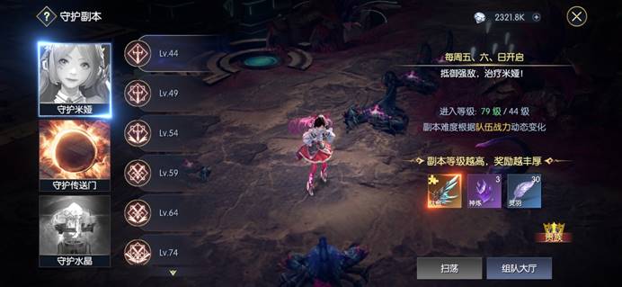 玩家会在对应等级(约44级)开启守护米娅的活动。这是组队副本,但也可以独自挑战。哪怕是大佬玩家,也建议组队完成。虽然通关副本需要的是消灭所有敌人,但副本的关键却是米娅不死,米娅如果死亡任务等于失败。而在副本开始时,米娅只有1%的残血,玩家既需要收集治疗水晶帮助米娅回血,又要消灭敌人。大批的敌人又只会围攻米娅一个,一个人做两件事,通关还是比较吃力的。