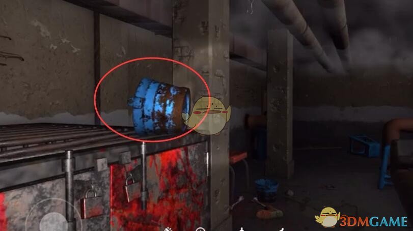 位置:点击铁笼上面的蓝色桶。将它收集得到。