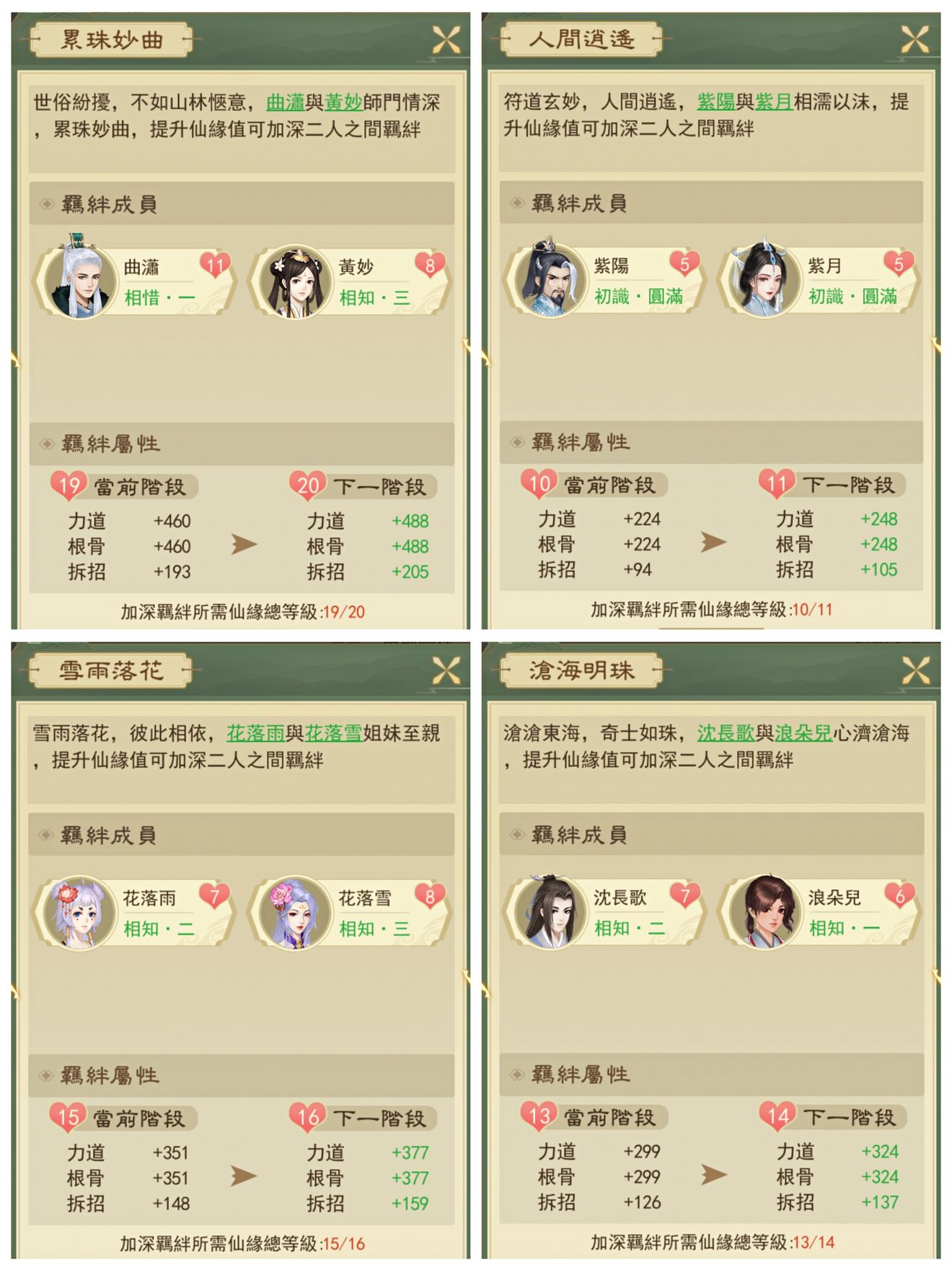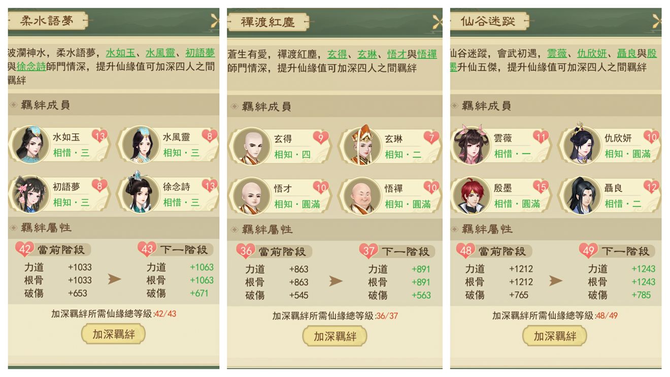 以上就是《云端问仙》仙缘属性羁绊效果介绍,更多游戏攻略请持续关注手游网!