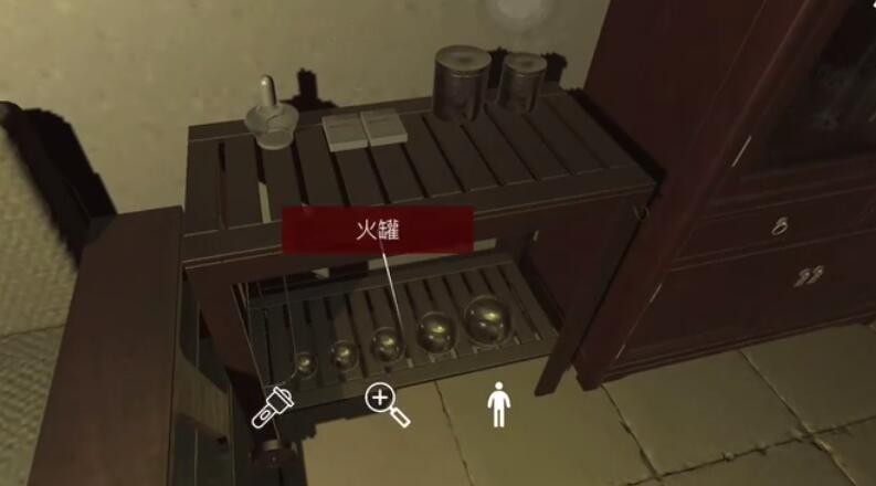 位置:如图,在大厅放置酒精灯的桌子下面,可以找到“火罐”这个线索。