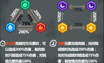 光暗元素相互克制,光对暗或暗对光造成200%伤害;