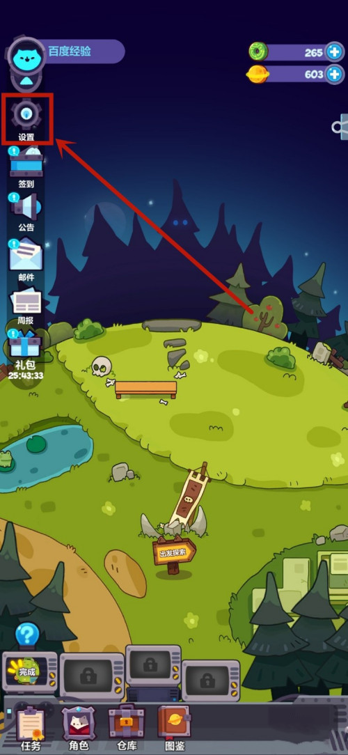 二、然后点击左上角的【设置】选项,进入到游戏的设置界面当中。