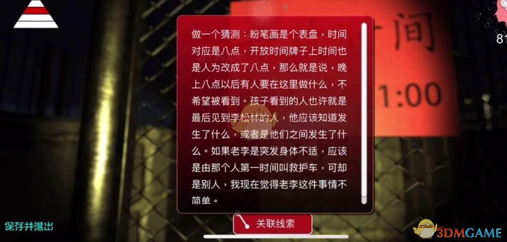 猜测:该线索需要关联四个线索才能获得,分别是:真正的时间、粉笔画、匿名纸、开放时间。