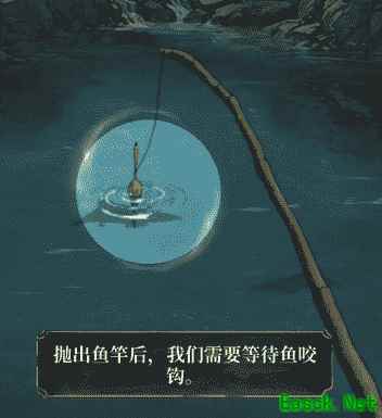 第三步:抛出鱼竿后,我们需要等待鱼咬钩。