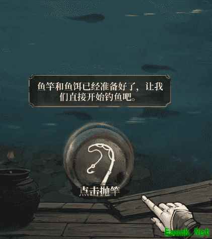 第二步:准备好鱼饵和鱼竿后,点击【抛竿】按钮。