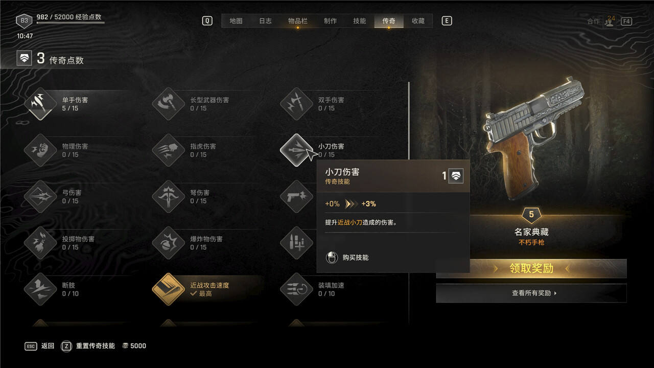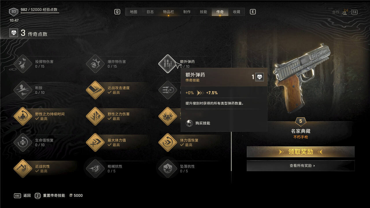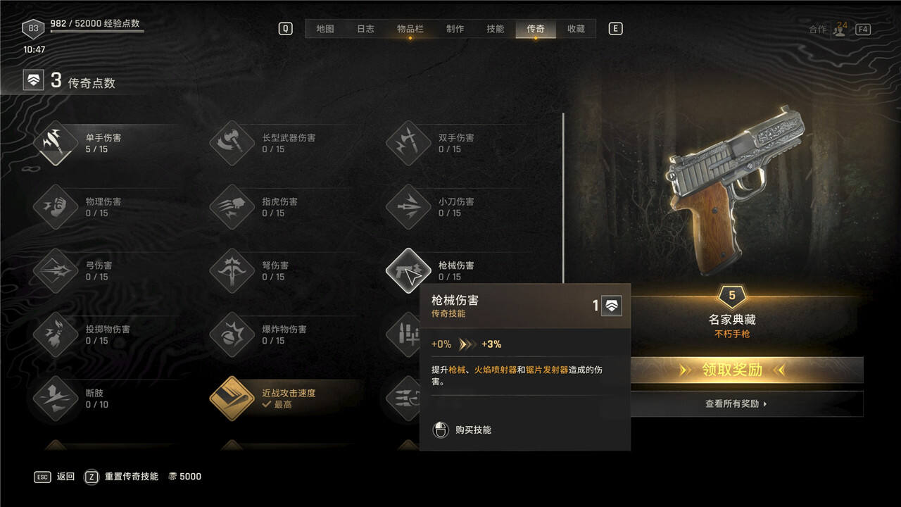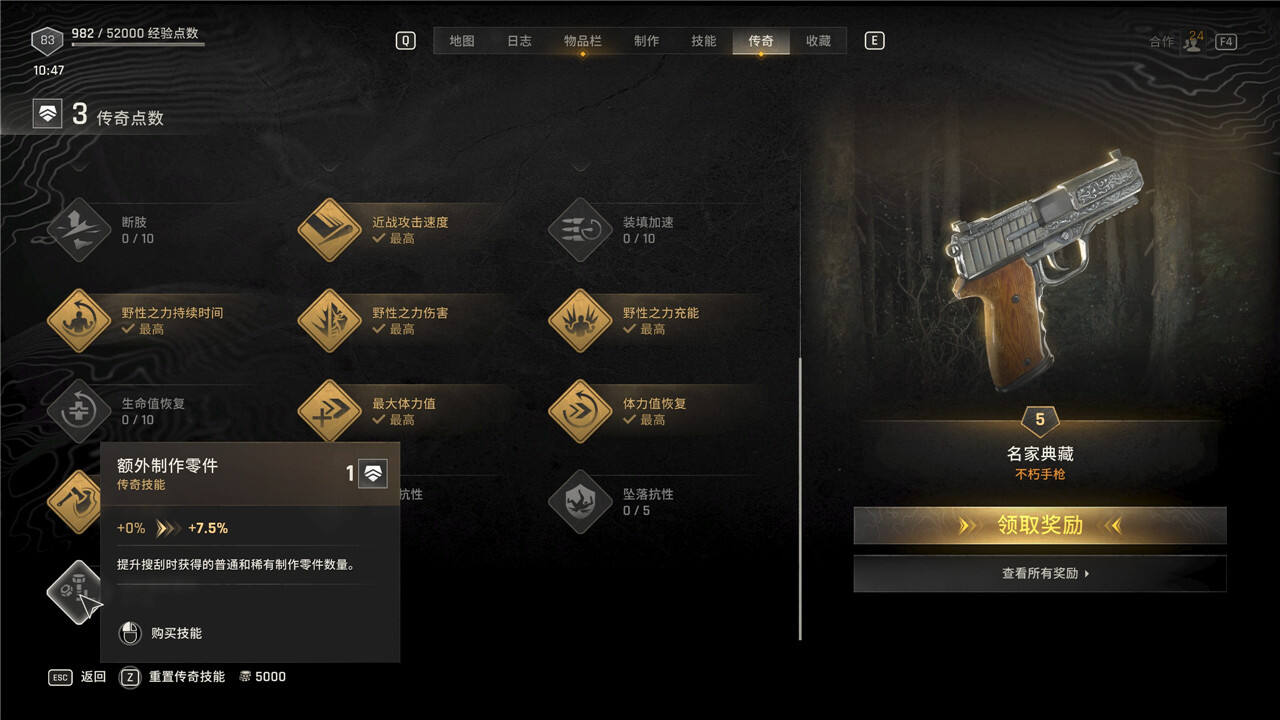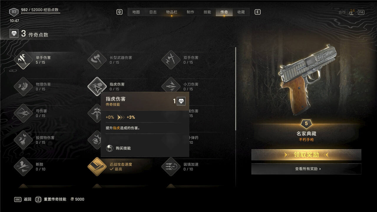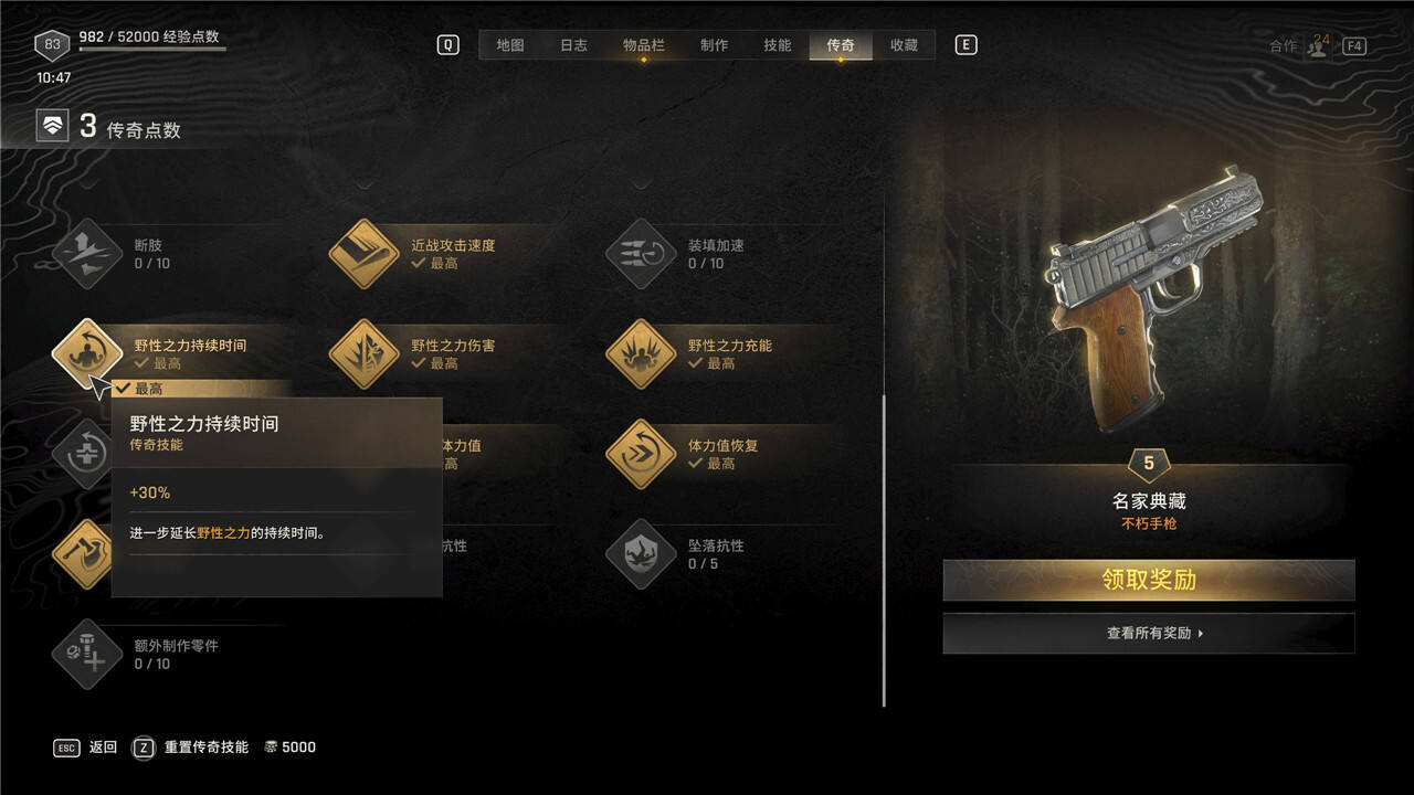 传奇技能可以随时花费5000块进行重置,但是重置后每级需要手动重新升级。
