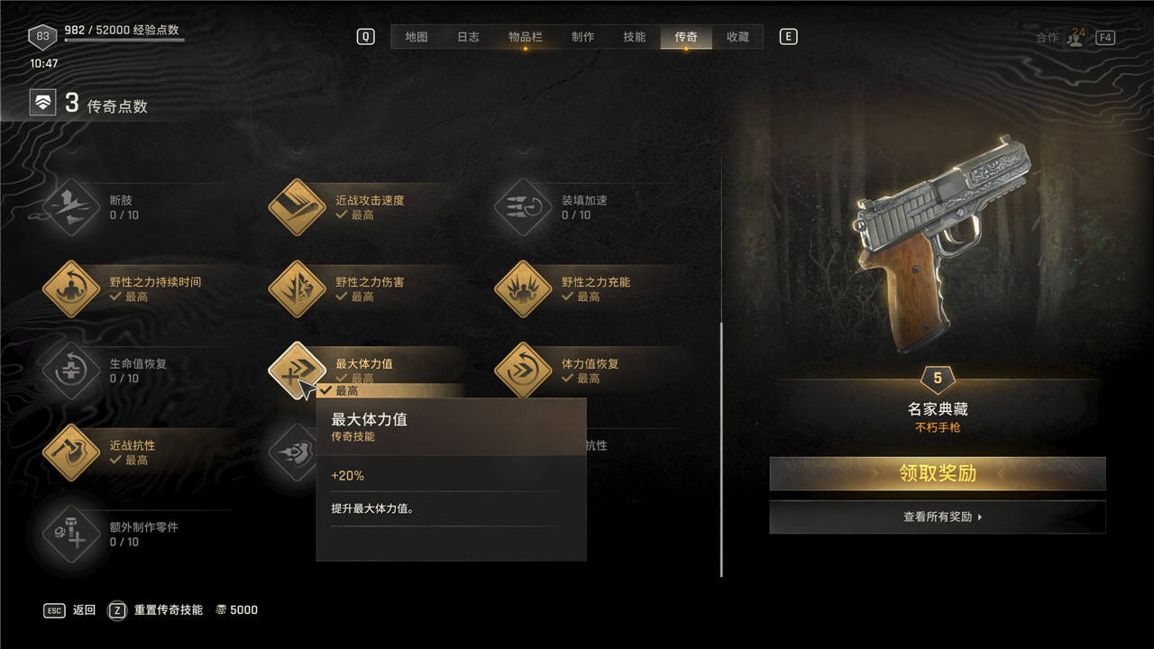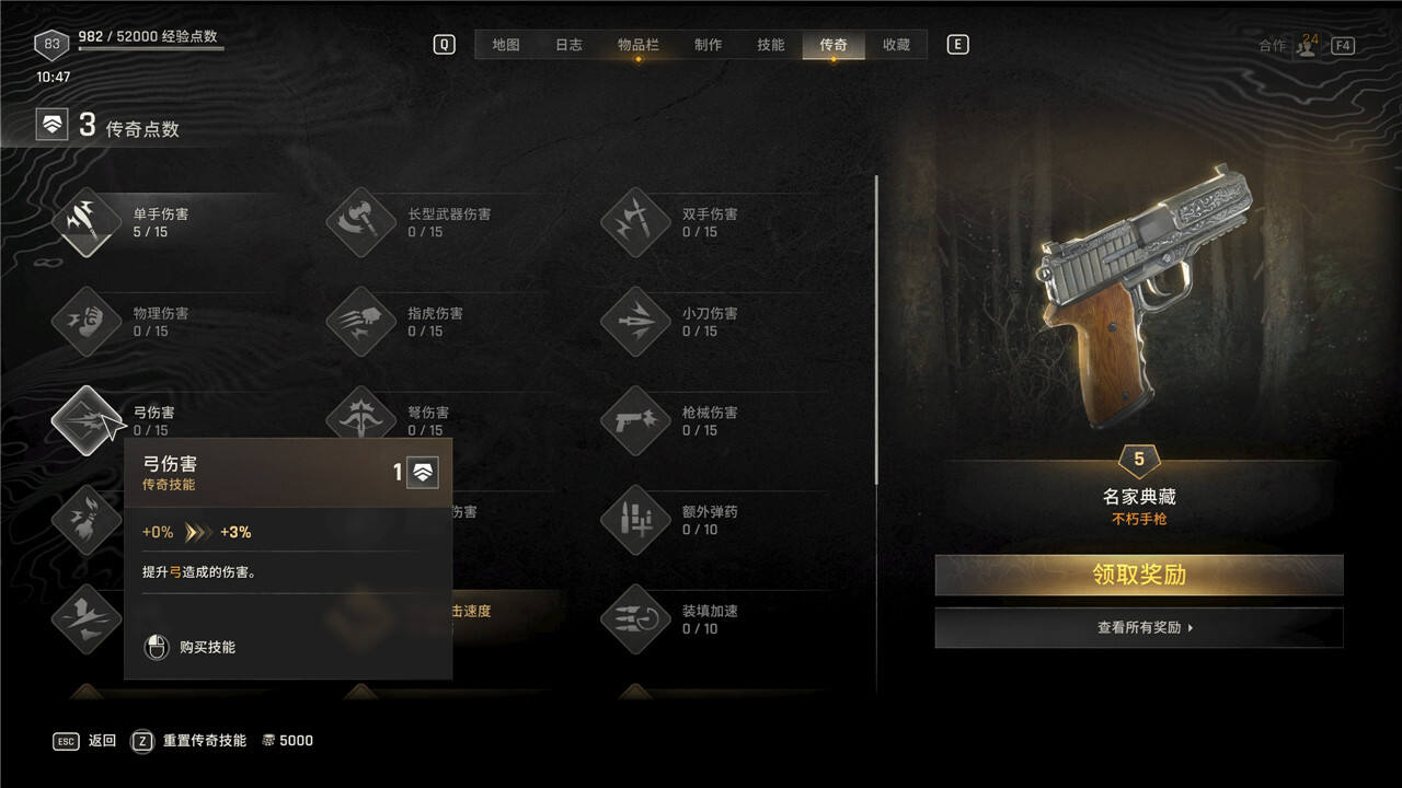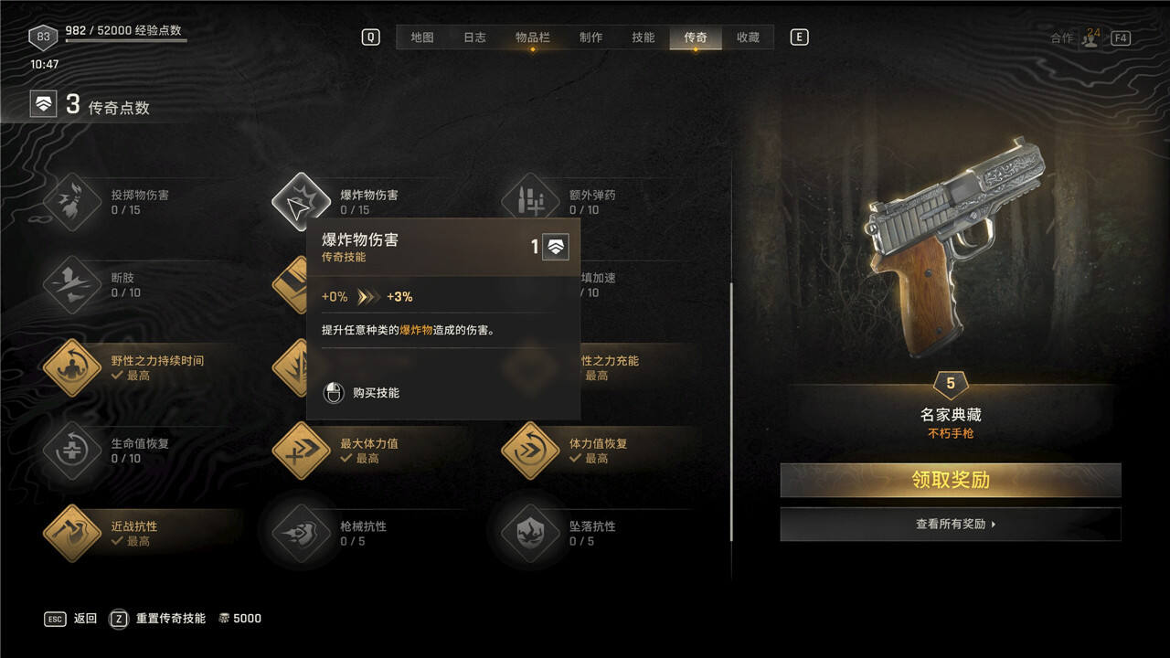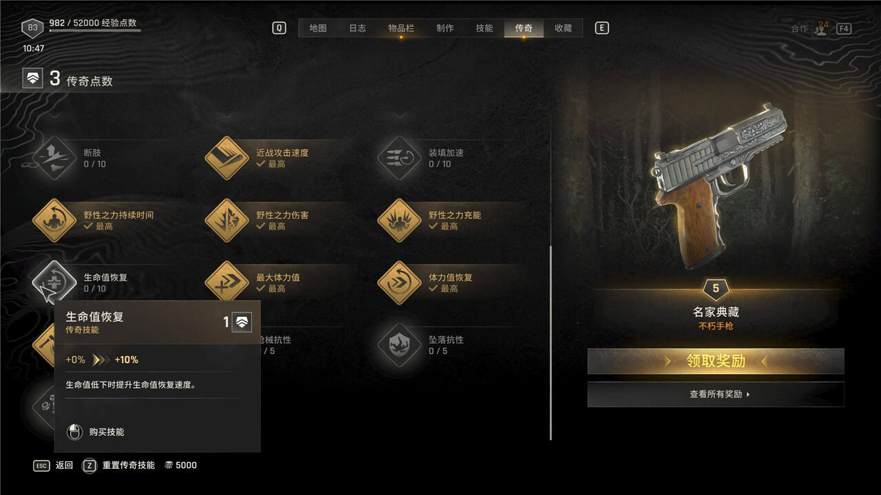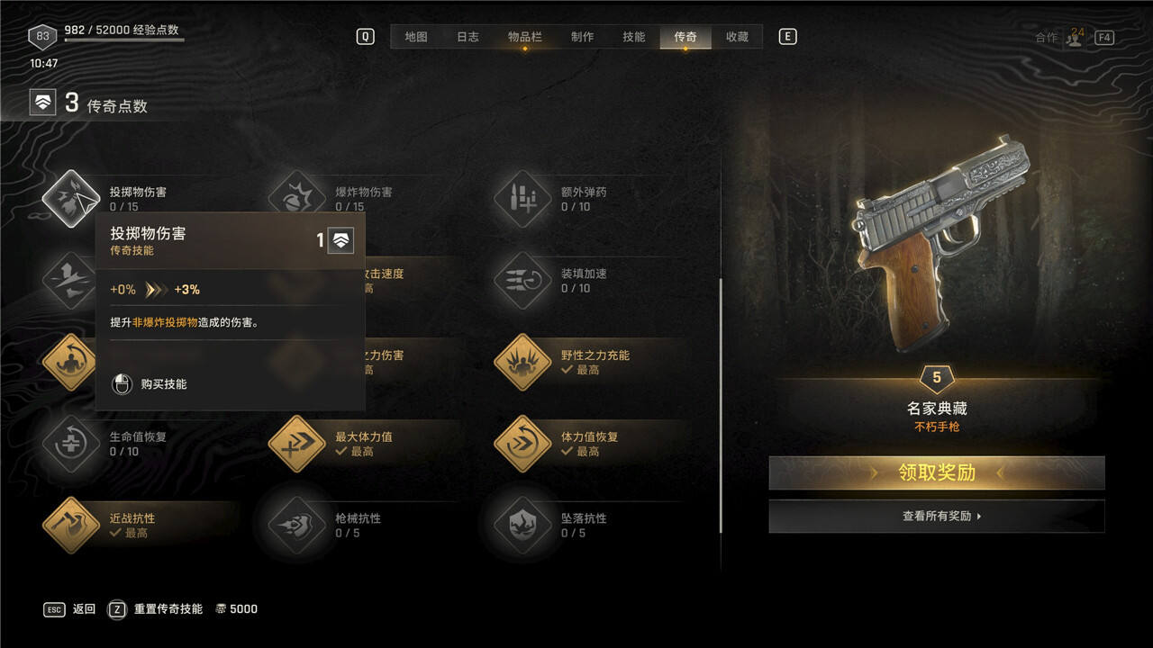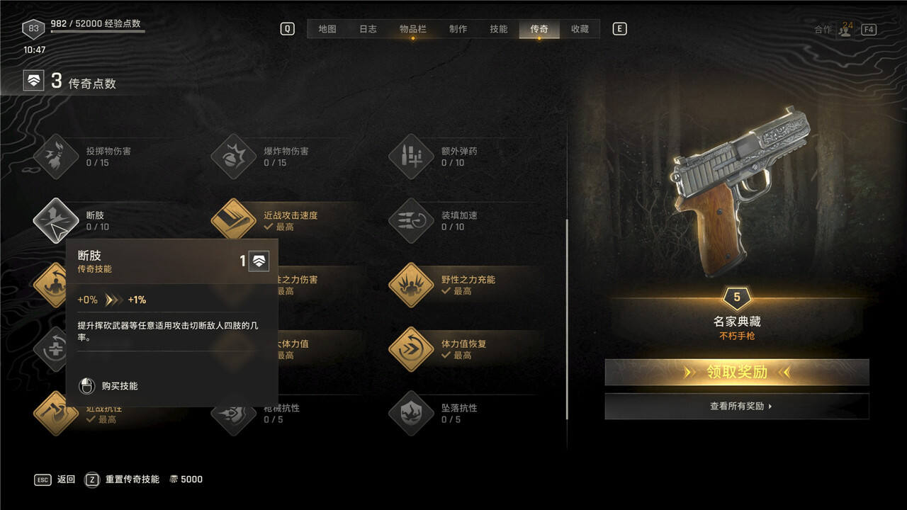 传奇技能可以随时花费5000块进行重置,但是重置后每级需要手动重新升级。