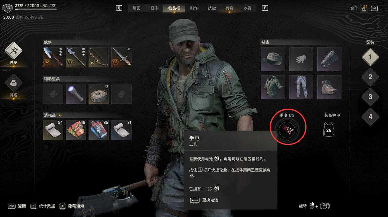 噩梦难度下手电筒有了电量限制,开启手电筒时可以在右下角看到手电筒的电量。