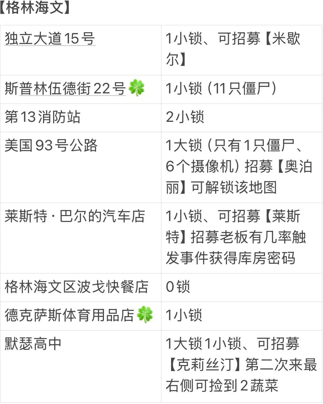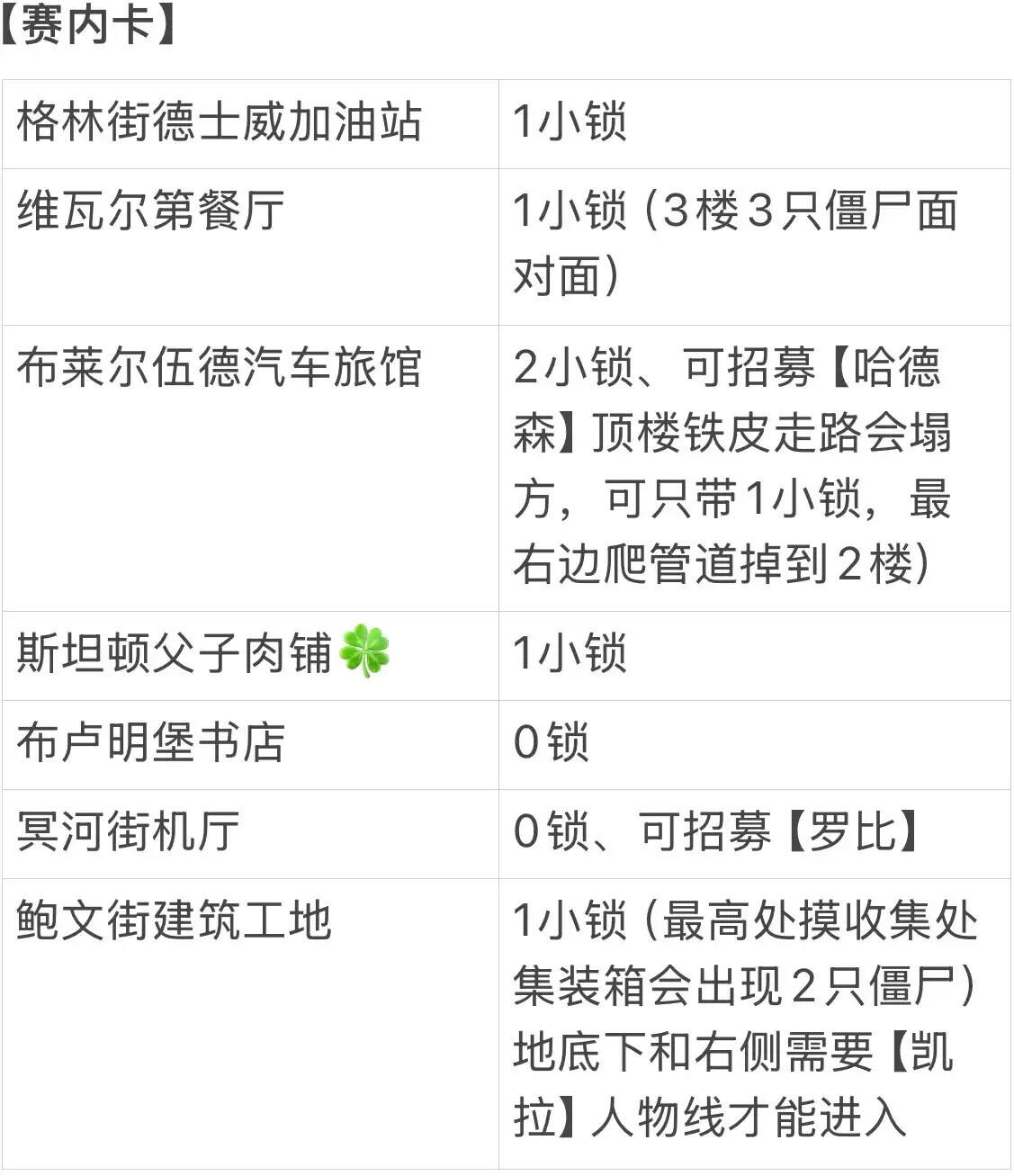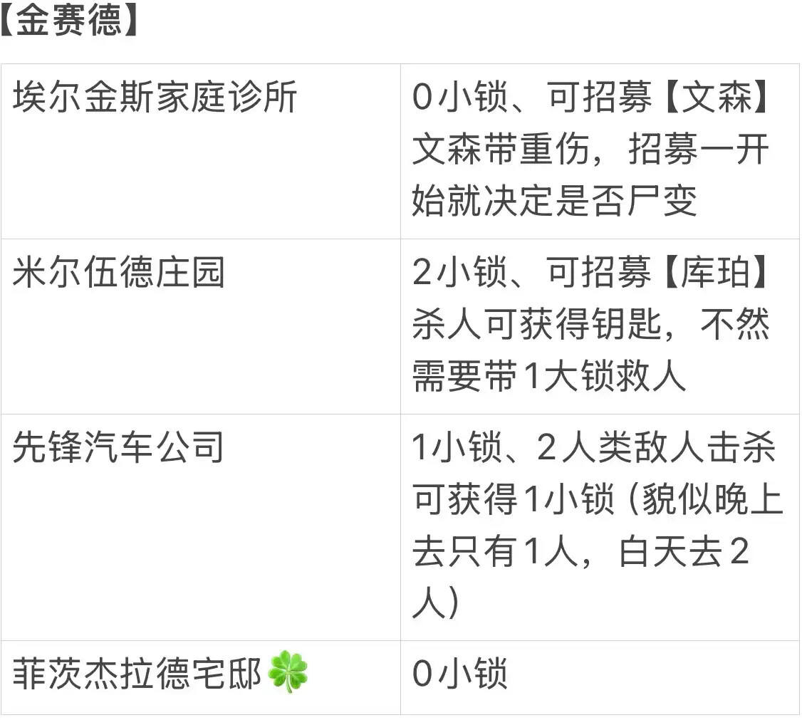 勇闯死人谷暗黑之日中大部分地图区域的探索都有需要用到开锁工具、钳子的地方,在初次探索中,很容易因为带的撬锁工具、钳子不够而导致一次探索无法全清,下面就为大家分享勇闯死人谷暗黑之日中各地图区域所需开锁工具、钳子的数量一览。