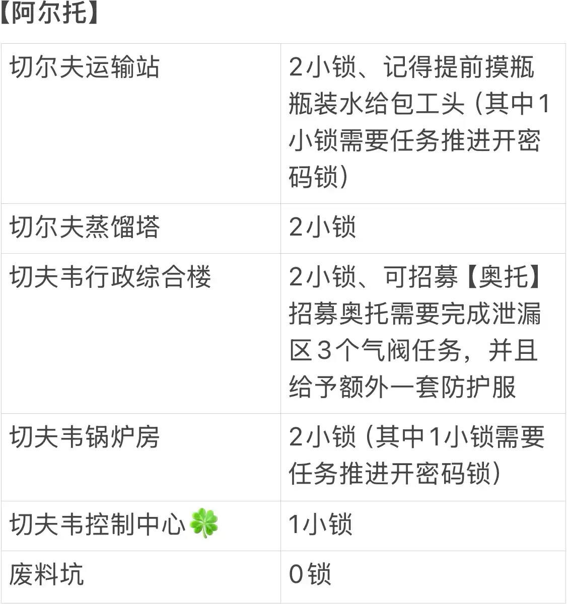 因为游戏在不断更新,地图中需要开锁的撬锁工具和钳子数量也在改变,目前根据个人全地图探索已经把所有大小锁点位给探出来了,也有可能有遗漏的地方