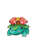 它背上的花蕾现在盛开成一朵巨大的红色花朵,有六片巨大的带着白色斑点的花瓣,用一个棕色的树干状物支持着,看起来像棕榈树。代替它皮肤上的像补丁一样的部分,妙蛙花现在有青蛙状的疣。事实上,妙蛙花的耳朵内部现在是红色的。爪子上有三个趾,腿也变得更粗。