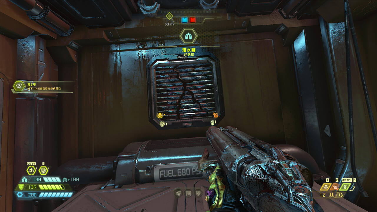 获取呼吸装置进入水下游泳区域,跟着水下补给品可以游到远处的进入地点,可收集+2额外生命