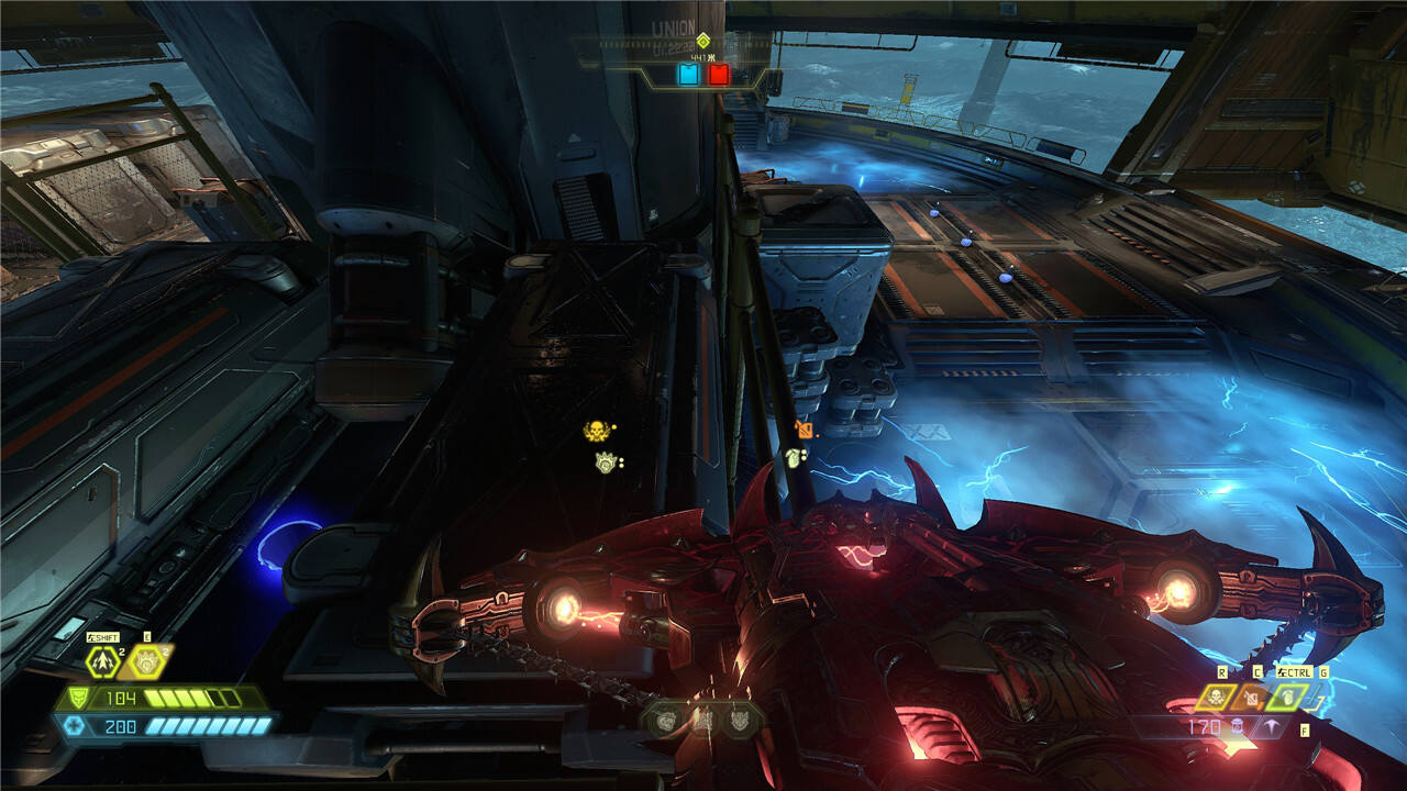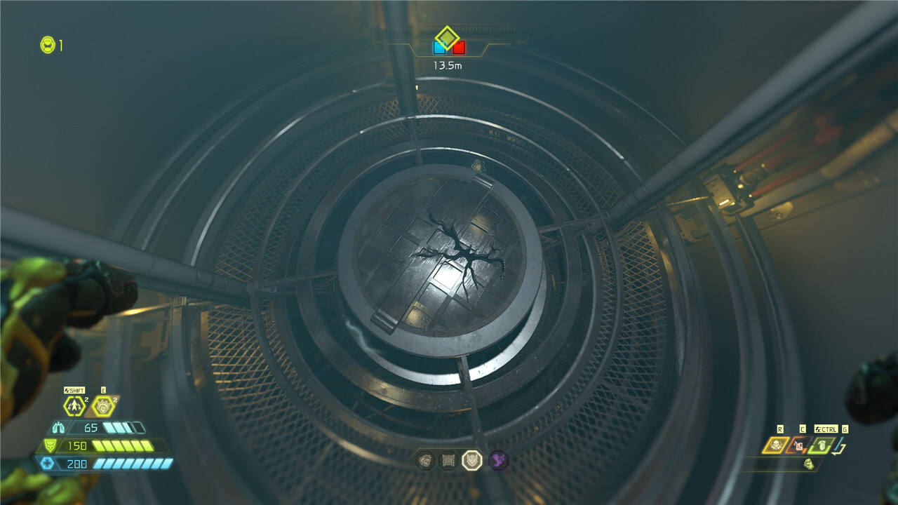 平台地下有一处可破坏的裂口,破坏后可以看到蓝球补满生命值+护甲。