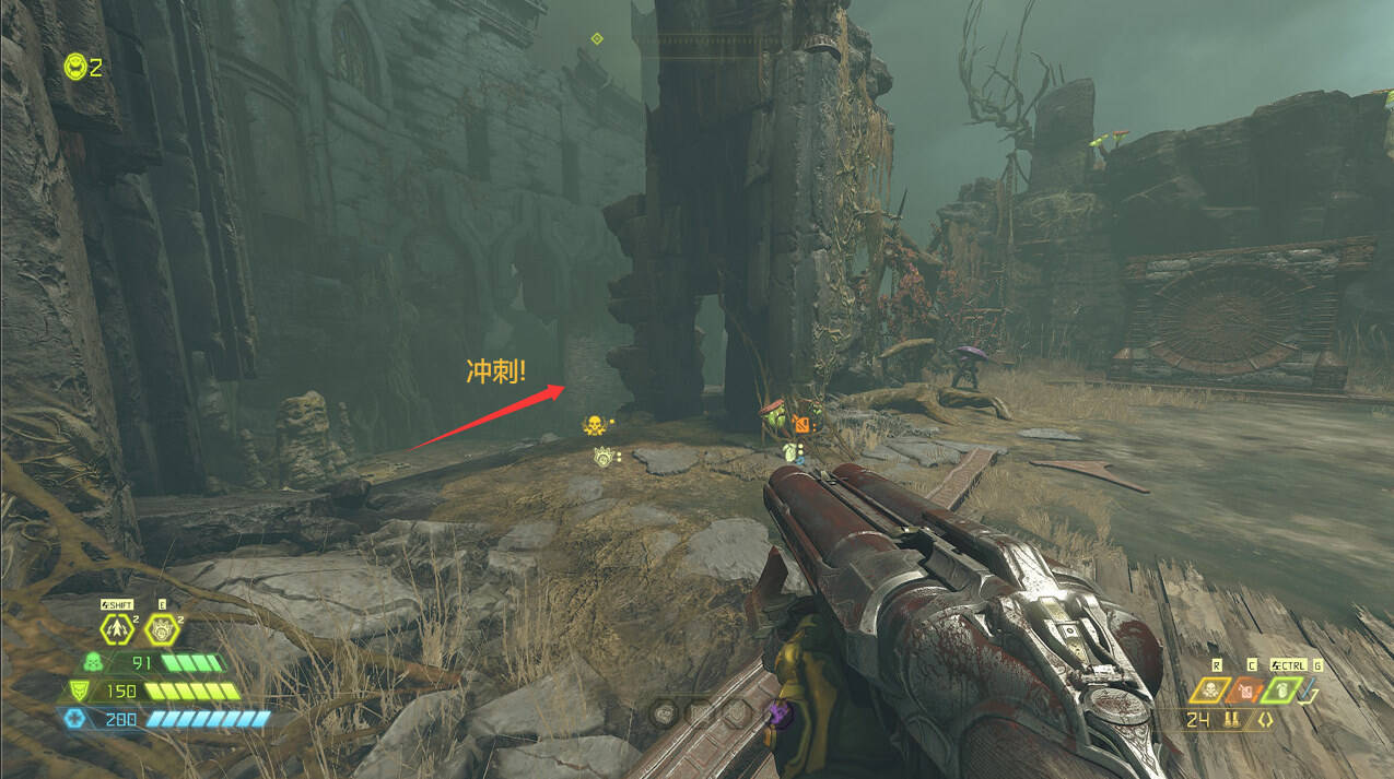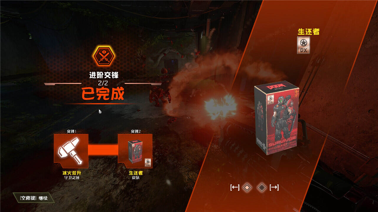 完成本关两处秘密交锋后可解锁皮肤”血色毁灭战士“