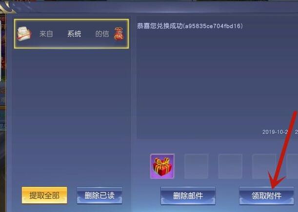 6、即可兑换成功,然后在邮箱【领取附件】就可以了。
