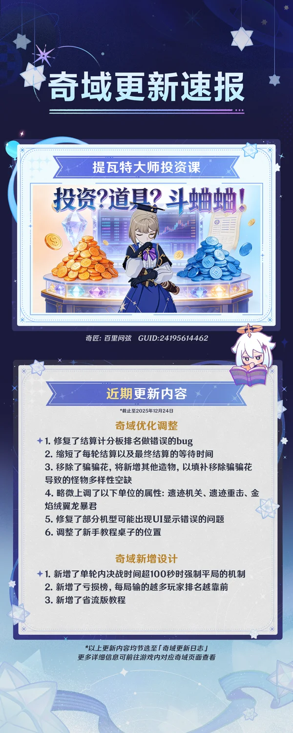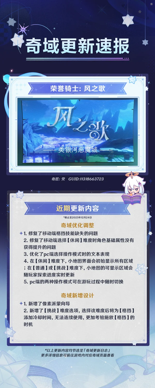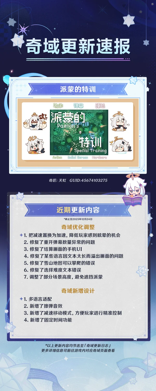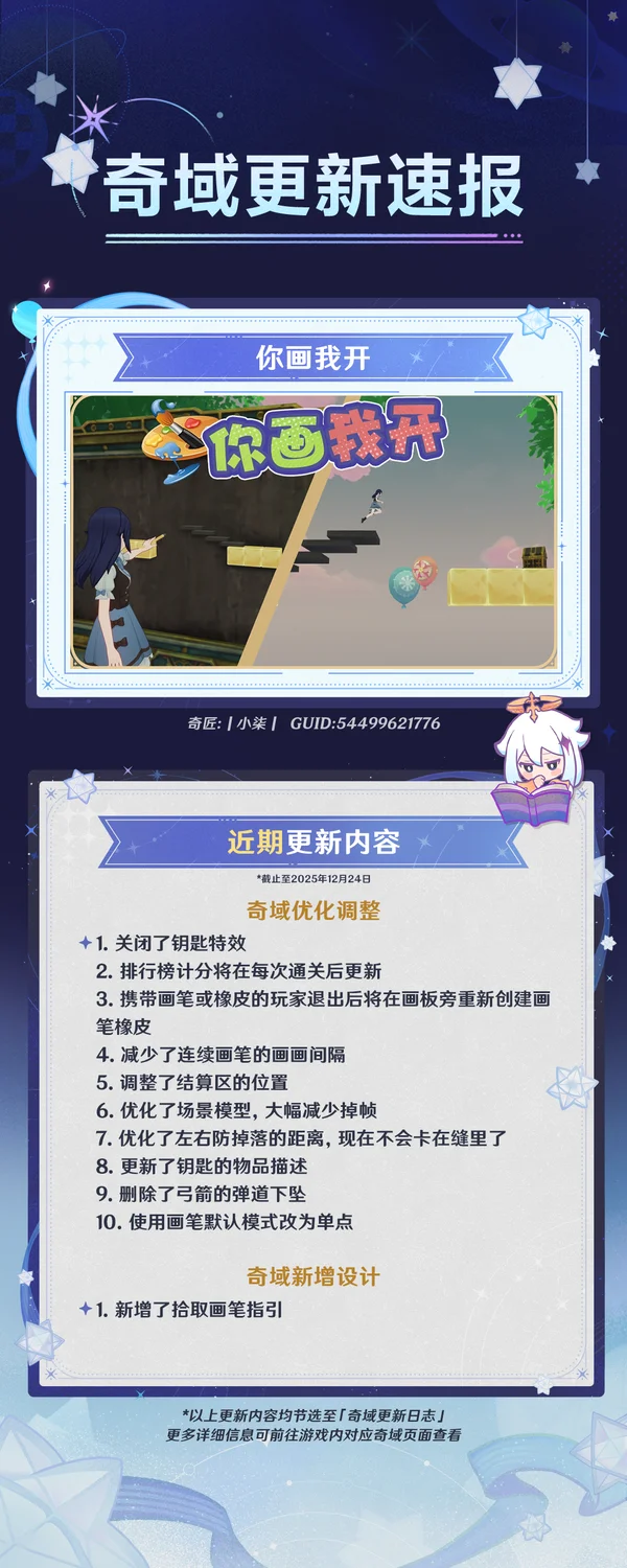原神千星奇域在近期进行了更新,奇域模式下的游戏修复了玩家反馈的问题,并在玩法上进行了优化调整。本次最新调整包含了合作、竞速、类魂等游戏类型,那么下面一起看看千星奇域的最新更新调整内容有哪些吧。