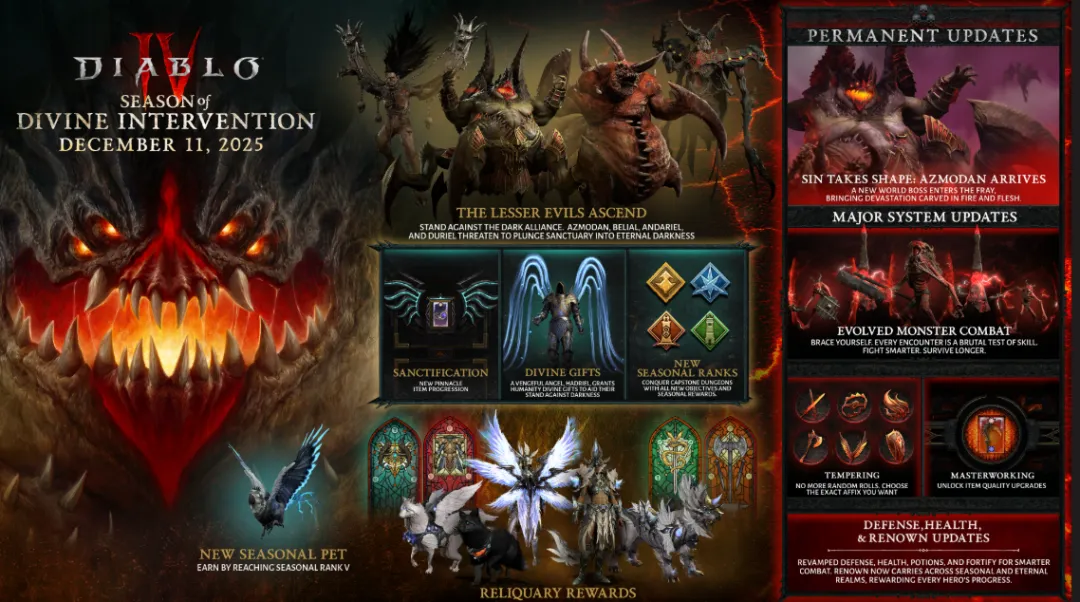 暗黑破坏神4神圣垂青是第11赛季“神圣干涉赛季”新增的核心赛季祝福奖励,该奖励可显著提升角色的属性。是新版本必刷的奖励之一,但很多玩家不知道该怎么获取神圣垂青,那么下面为大家带来获取教学。