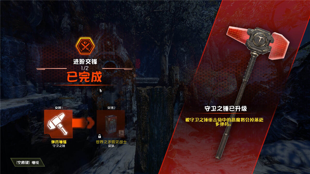 完成后第一次交锋后可获取守卫之锤升级”弹药增强“(守卫之锤命中的恶魔会掉落更多的弹药)