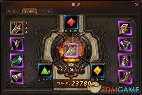 二、 当装备强化到一定阶段时,可以就可以打开装备宝石孔,在宝石孔内可以镶嵌对应的宝石。