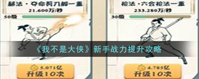 《我不是大侠》手游中新手的战力提升非常重要,可以有效提高实力,想必有很多小伙伴不太清楚我不是大侠战力怎么提升,下面小编给大家带来我不是大侠手游新手战力提升攻略,感兴趣的小伙伴们一起来看看吧。