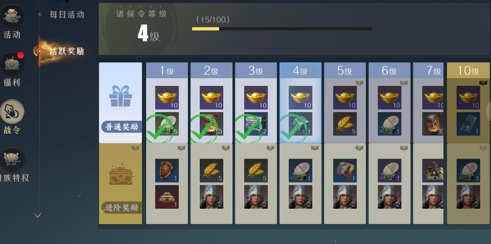 右上角活动-战令-每日活动完成后,每提升1级可以到下方活跃奖励领取奖励。