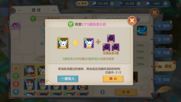 1、宠物进化时需要消耗对应类型的宠物。