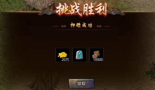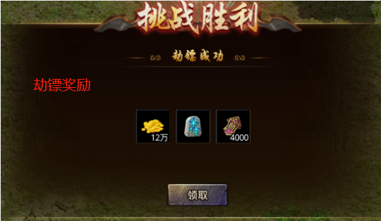 低级镖车押运需要消耗500传奇币,押运完成奖励(单倍):10000功勋、20万金币、1个生命之息