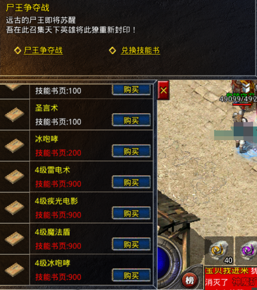 技能书页可以在NPC尸王封印者处兑换本职业的高级技能书,也可通过合成系统合成为更高级的技能书,大幅度提升自身属性。