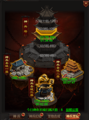 第一步,神兵圣域击杀BOSS,每天有6次机会。
