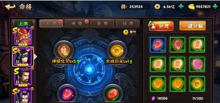 命格可以消耗元宝祈愿获得,每天可以最多免费祈愿5次,多余的命格可以分解为命魂,用于命格的升级,或在命格商店兑换命格。