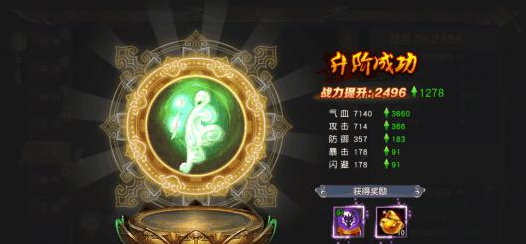 “进阶”即是玩家手动进阶,只要进阶材料足够,就可以鼠标点击进阶按钮进行进阶,若进阶材料不足,则可以使用元宝代替。