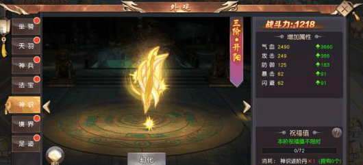 在荣耀西游中神识达到一定的阶数之后,可使用神识灵动丹、神识觉醒丹、神识飞升丹来增强神识的战斗力!