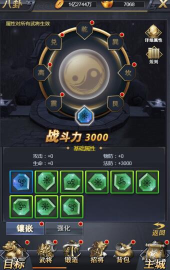 镶嵌阵符后,全体出战武将均可享受到阵符的属性加成。