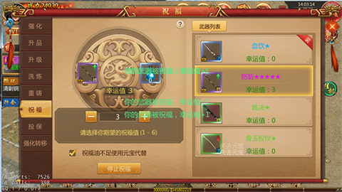 (1)普通祝福油:有一定几率提升武器的幸运值,最大幸运值为7。
