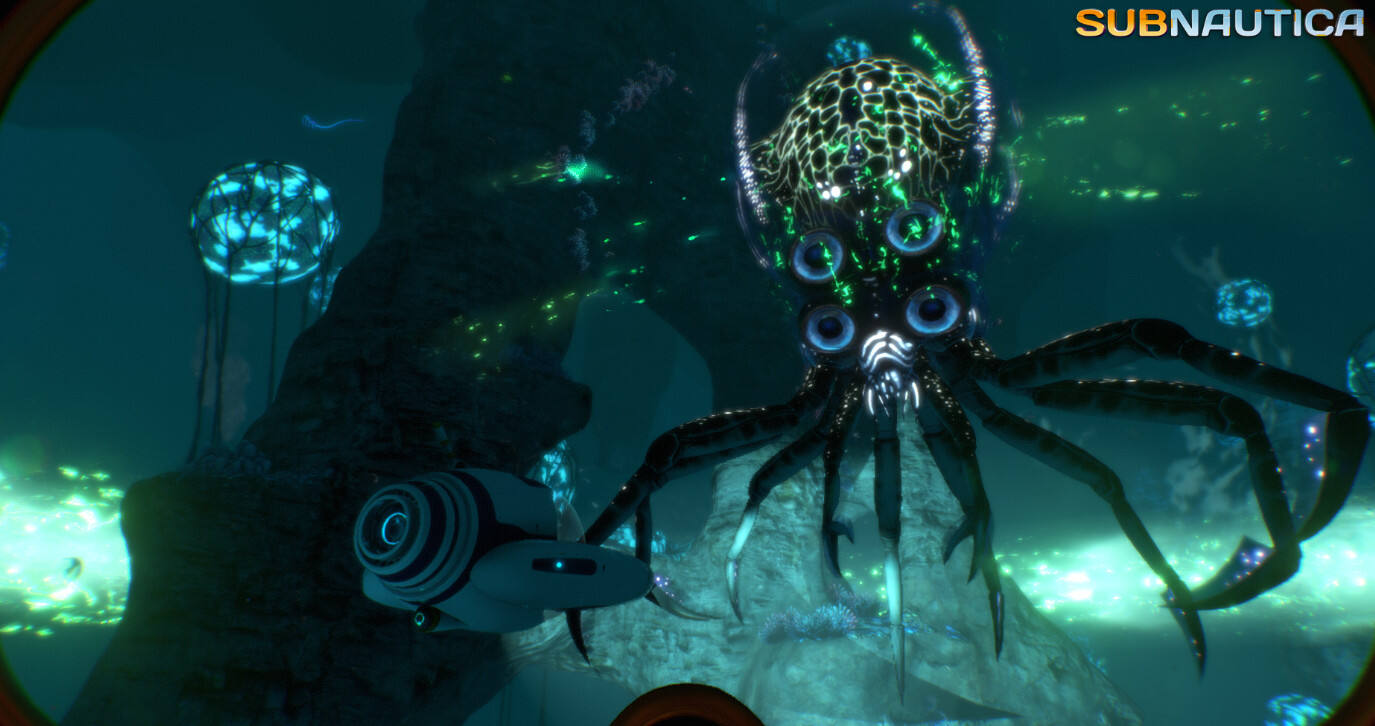 区域简介:由于有各种各样的动植物生活在这里,海藻森林是整个星球最具多样性的生态系统之一。这里生长着大量的海藻,形成了独特并具有标志性的生态特征,甚至将这里的海水映衬成了与海藻相似的绿色。同时,海藻森林也是潜行者的老家,在这里会很容易遇到他们,在玩家需要制造独眼巨人号时,会需要跟潜行者打交道的。 海藻森林整体位于海洋的中等深度,这里有很多危险且烦人的生物,例如潜行者、毒刺等等。这里的海床大多被苔类或沙土覆盖,地表强度不高。所以地形比较多变,偶尔会分布一些小型的洞穴系统。同时,由于星球早期的板块运动,海藻森林里有很多小型的裂隙或峡谷。 这里的矿藏较为丰富,但基本都是比较基础的材料,矿物类型为石灰岩或者砂石。海藻森林丰富的海藻资源储备可以为玩家早期的生存带来诸多便利,在游戏中期之前你应该会频繁地光顾这里,一定要和潜行者处好关系。说到这里,不得不提,潜行者有着喜欢囤积金属的怪癖,所以当你的钛资源不太够用的时候,不妨来这里转转,保证你有意想不到的收获。 值得一说的是,在海藻森林更深处的地方,有可能遇到较为危险的生物,催眠师,它体型虽小,却可能会让你死于幻觉或缺氧。在光线越来越暗的时候,就尽量不要再下潜了。